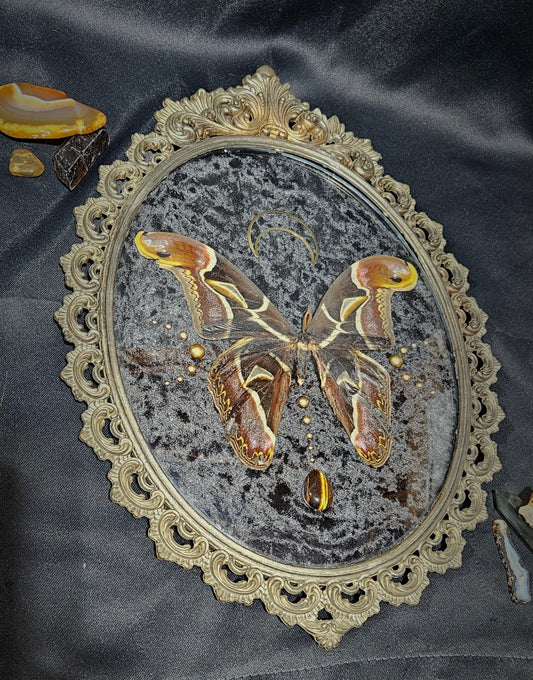 Real preserved Atlas Moth Brass Italian Frame 1900s