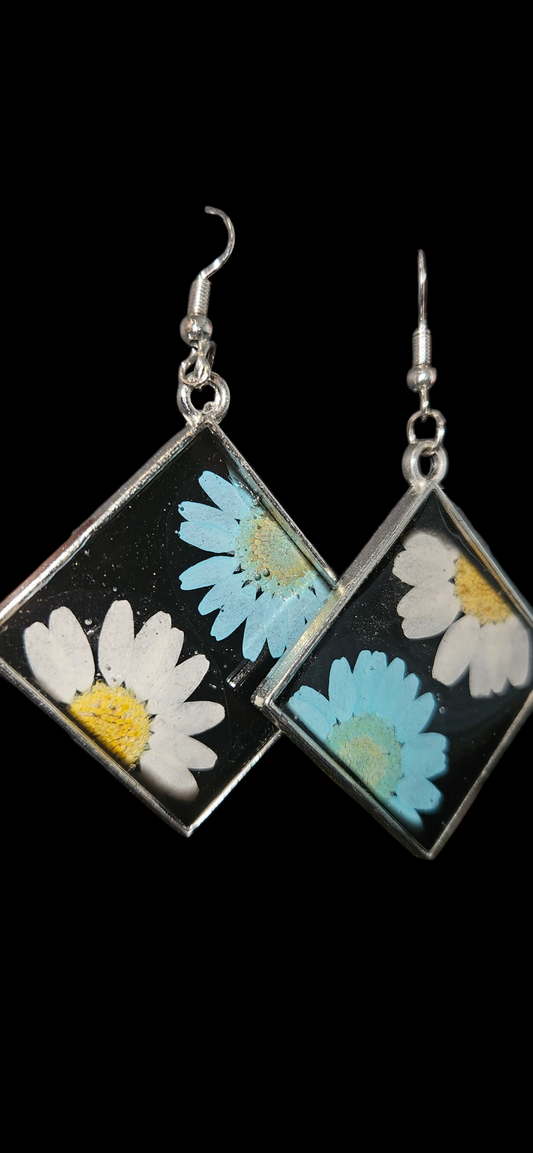 Blue & White Flower Earrings